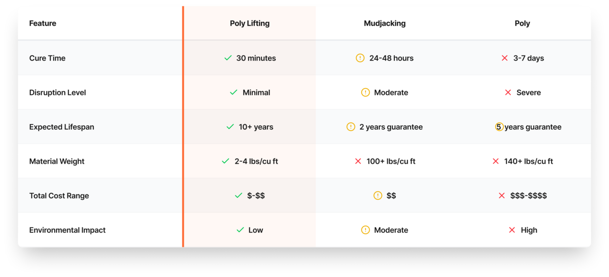 Full replacement can cost 3-5x more than professional lifting.